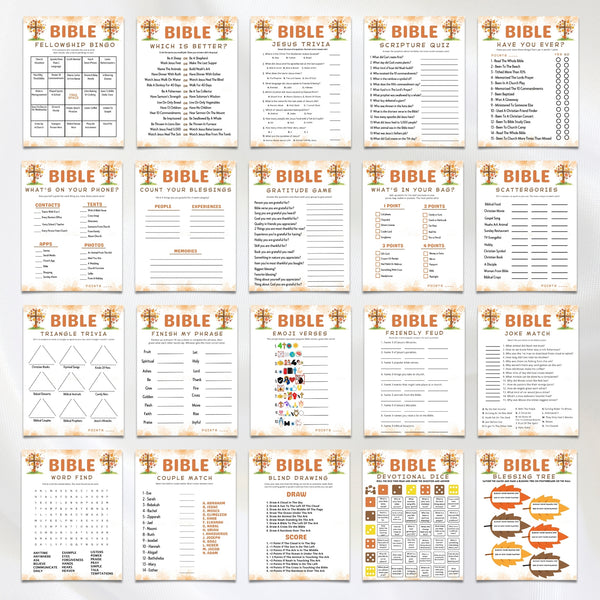 Welcome a season of fellowship with our comprehensive bundle of 25 printable Christian Fall-Themed Bible Games! This collection is thoughtfully designed to spark laughter, conversation, and a deeper connection with the Word, making it the perfect resource for any church or ministry event.